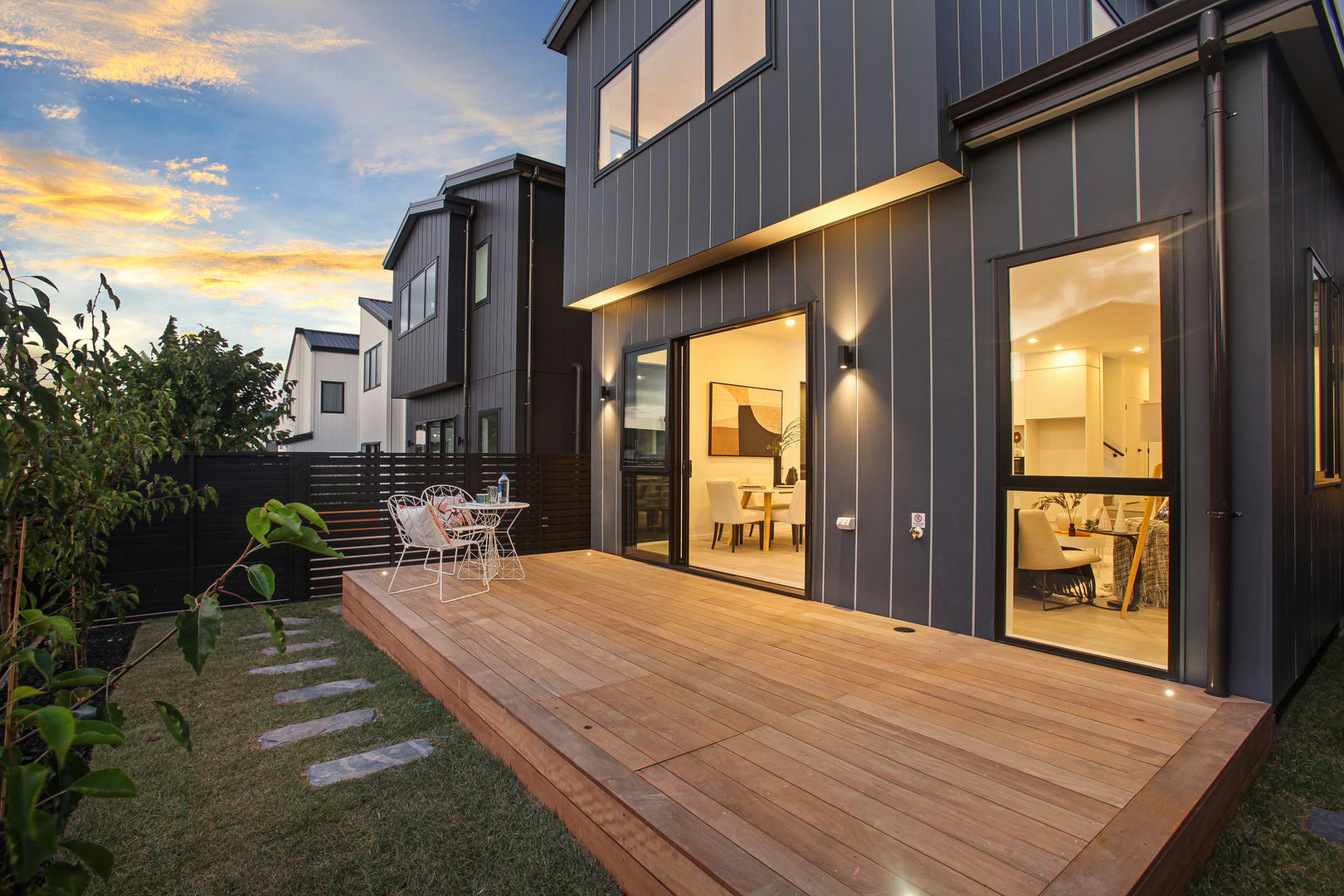 Upstairs reveals a private sanctuary, featuring four well-appointed bedrooms anchored by a luminous master retreat complete with walk-in robe and spa-like ensuite featuring floor-to-ceiling tiling. The outdoor living spaces have been given equal consideration, with a durable Garapa timber deck featuring integrated lighting that creates an alfresco extension of the indoor living areas, all set within a beautifully landscaped and fully secured yard.